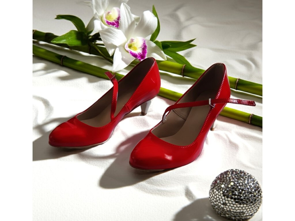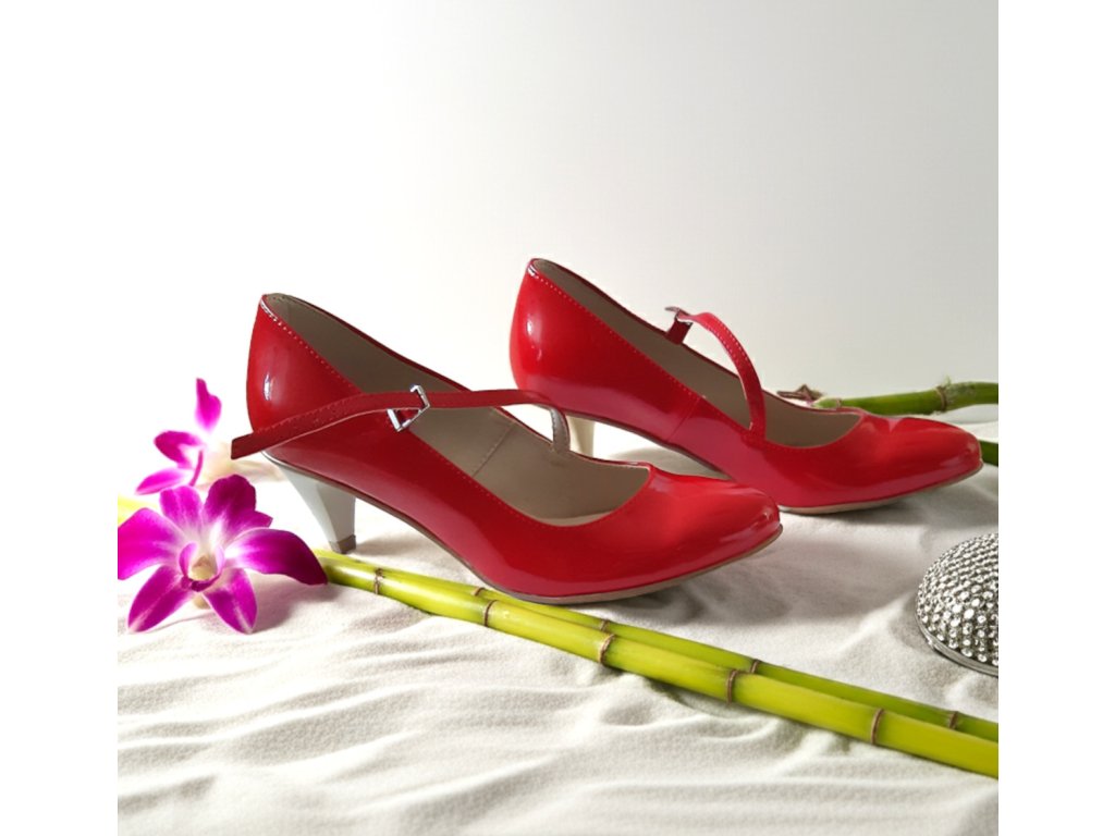 Červené lakované lodičky se zapínáním