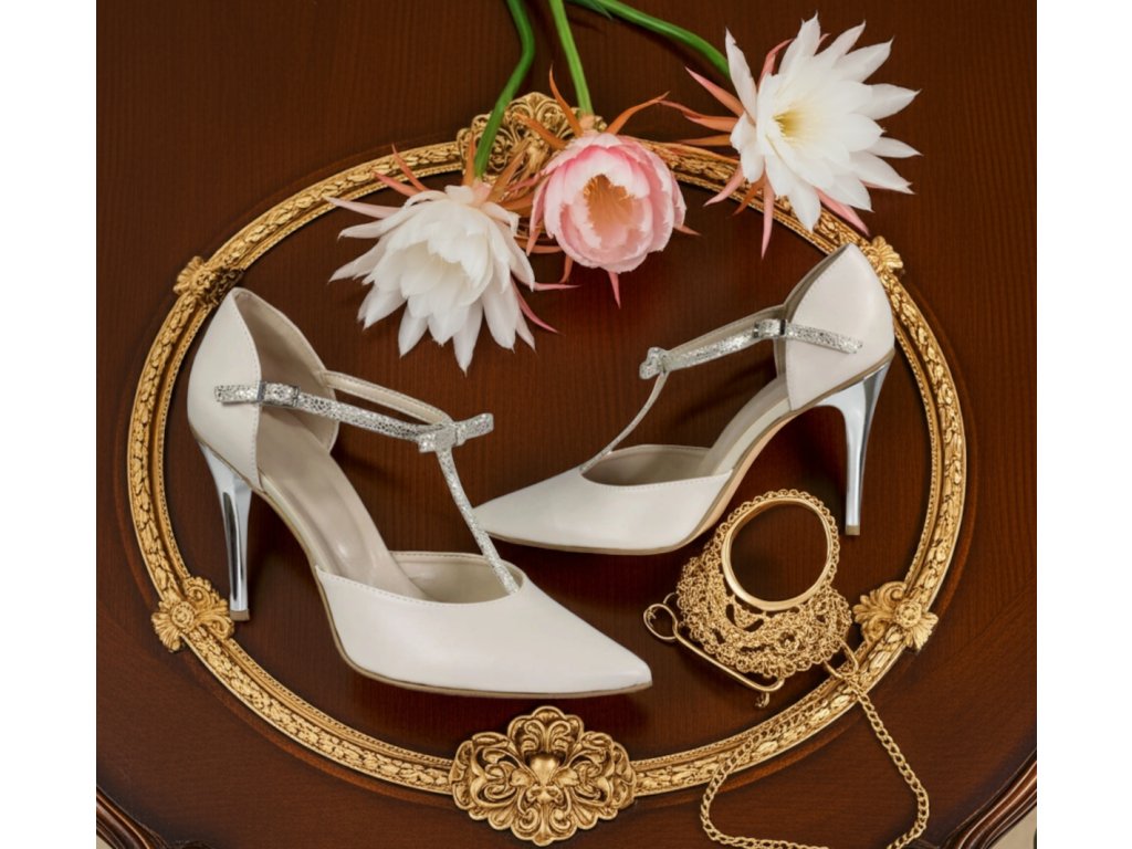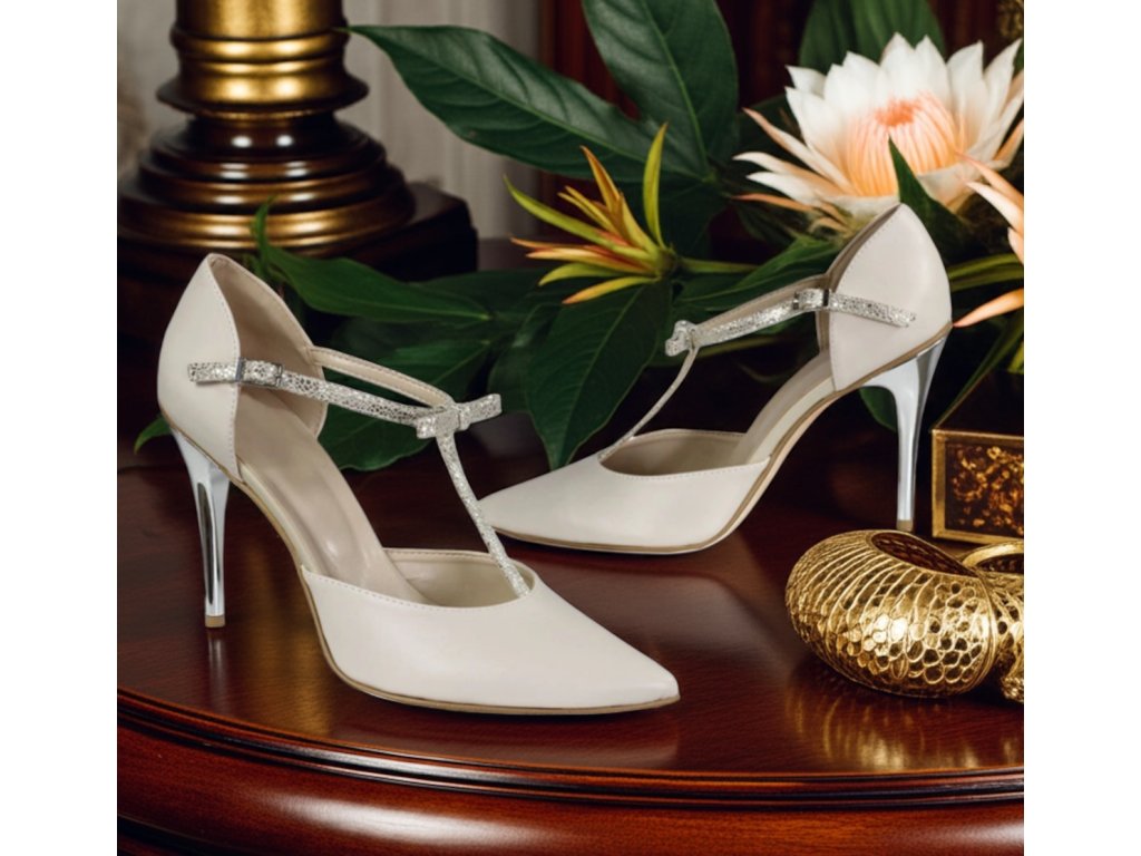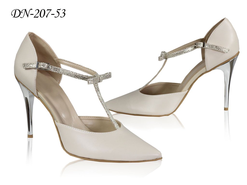 Kožené svatební boty se stříbrným podpatkem - latte