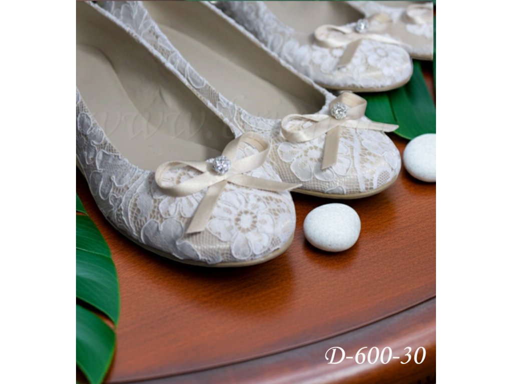 Krajkové svatební balerínky se štrasovou ozdobou - tmavě krémové