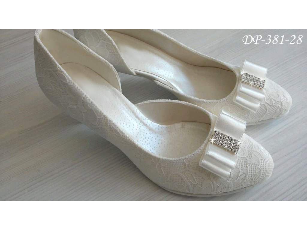 Krajkové svatební boty na nízkém podpatku - ivory