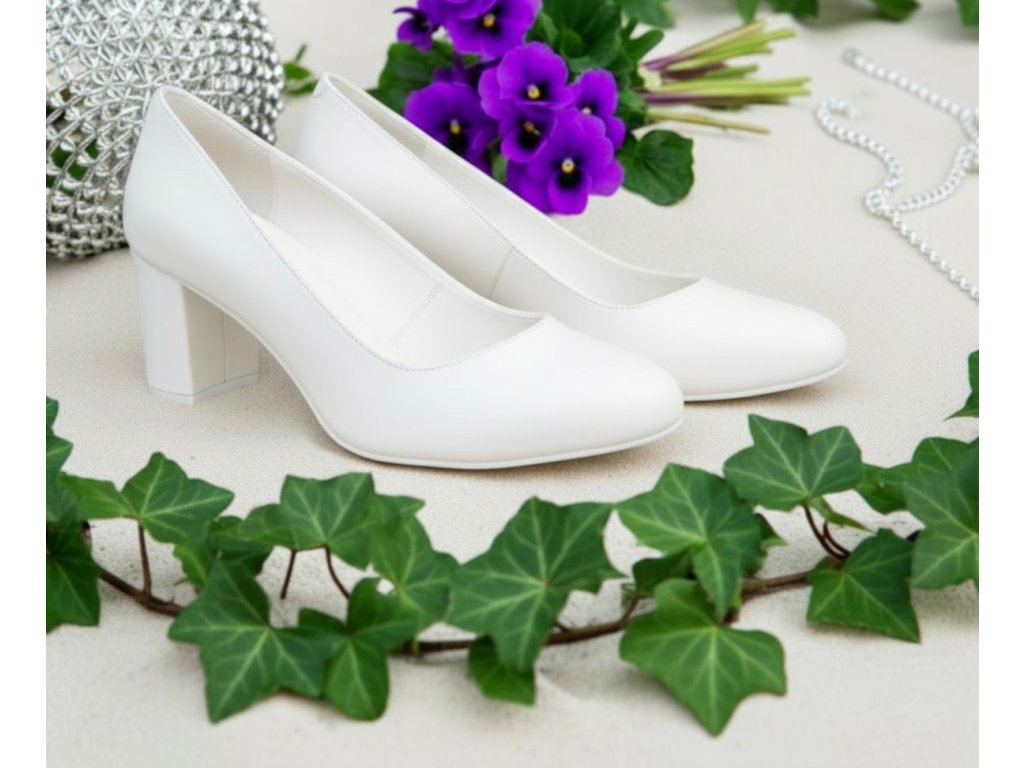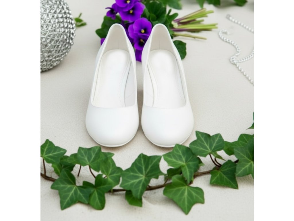 Saténové lodičky na nízkém podpatku - bílé