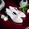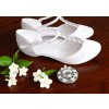 Saténové svatební boty se štrasovým zapínáním - bílé