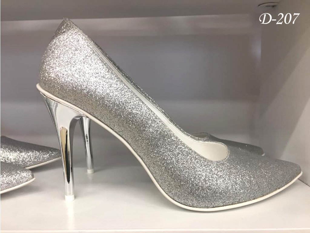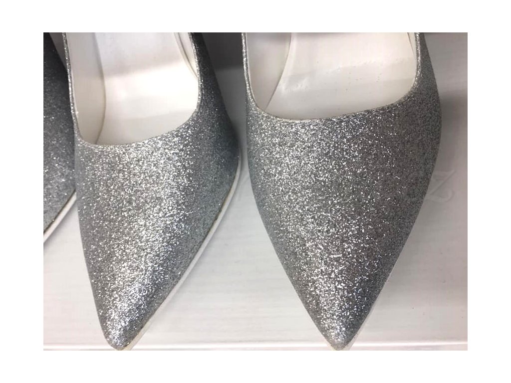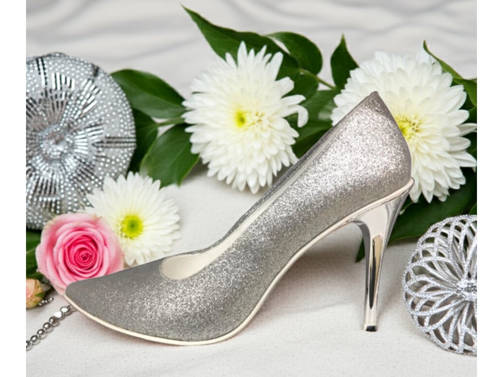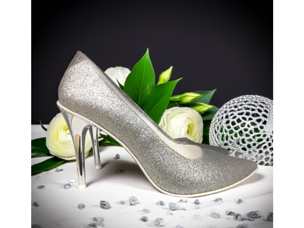 Stříbrné třpytivé lodičky se stříbrným podpatkem