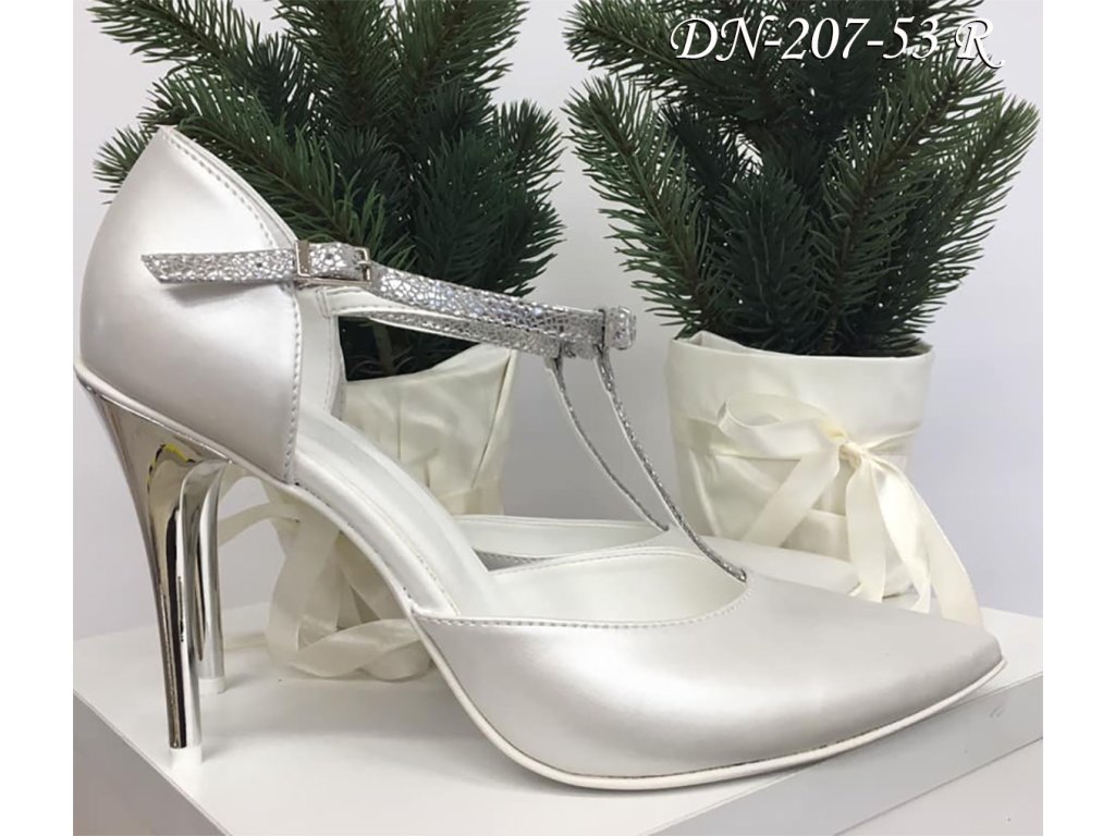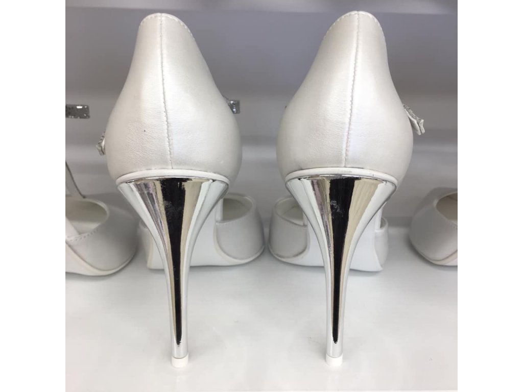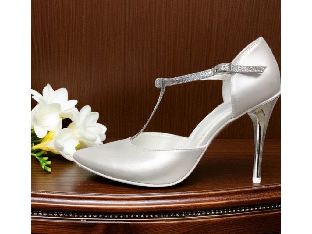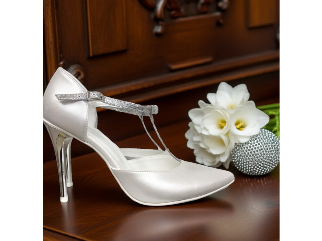 Svatební boty se stříbrným zapínáním, materiál Perla.