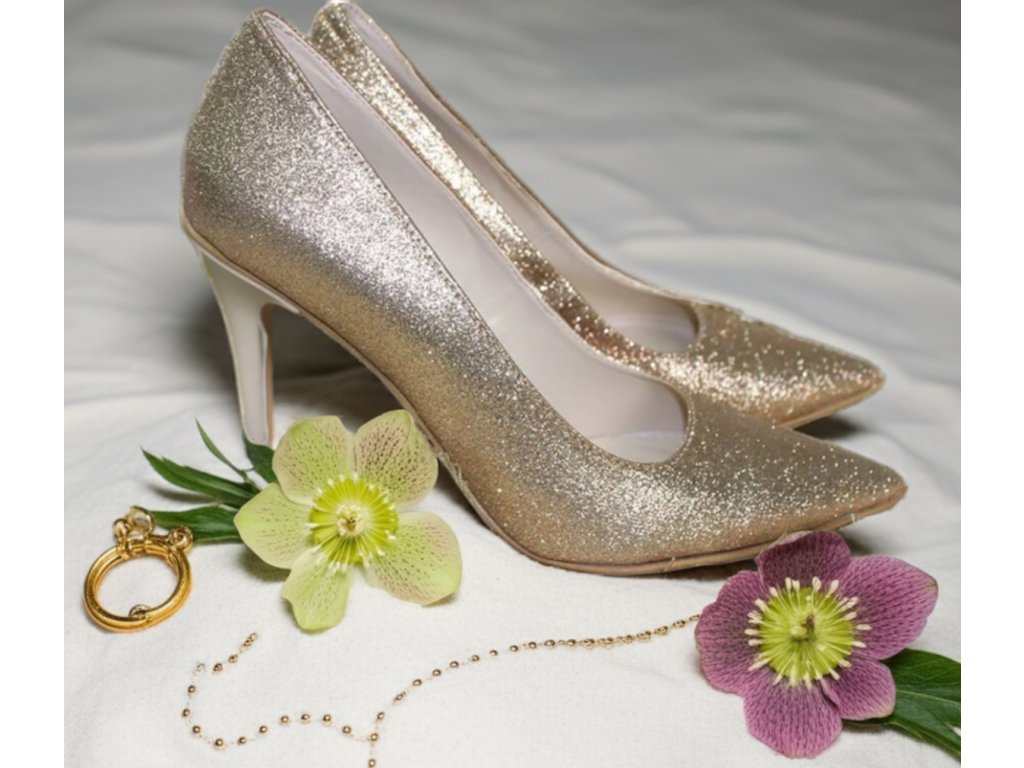 Třpytivé svatební lodičky.