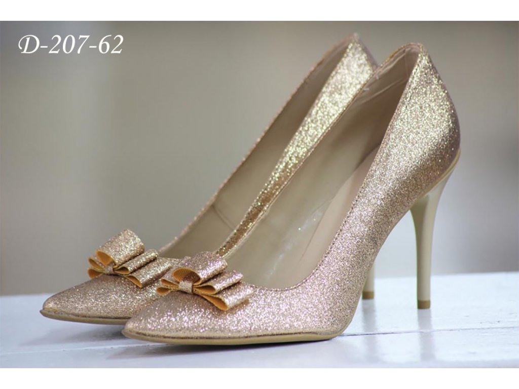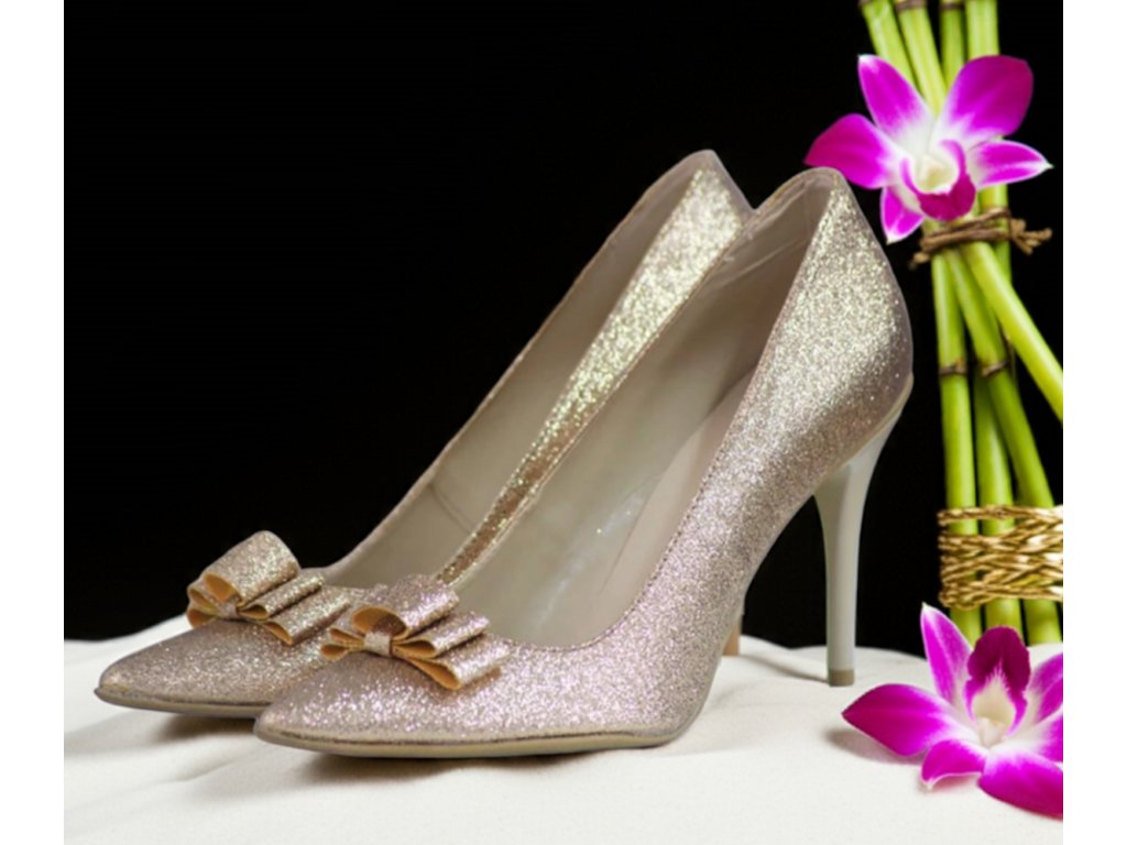 Třpytivé svatební lodičky s mašlí - světle zlaté