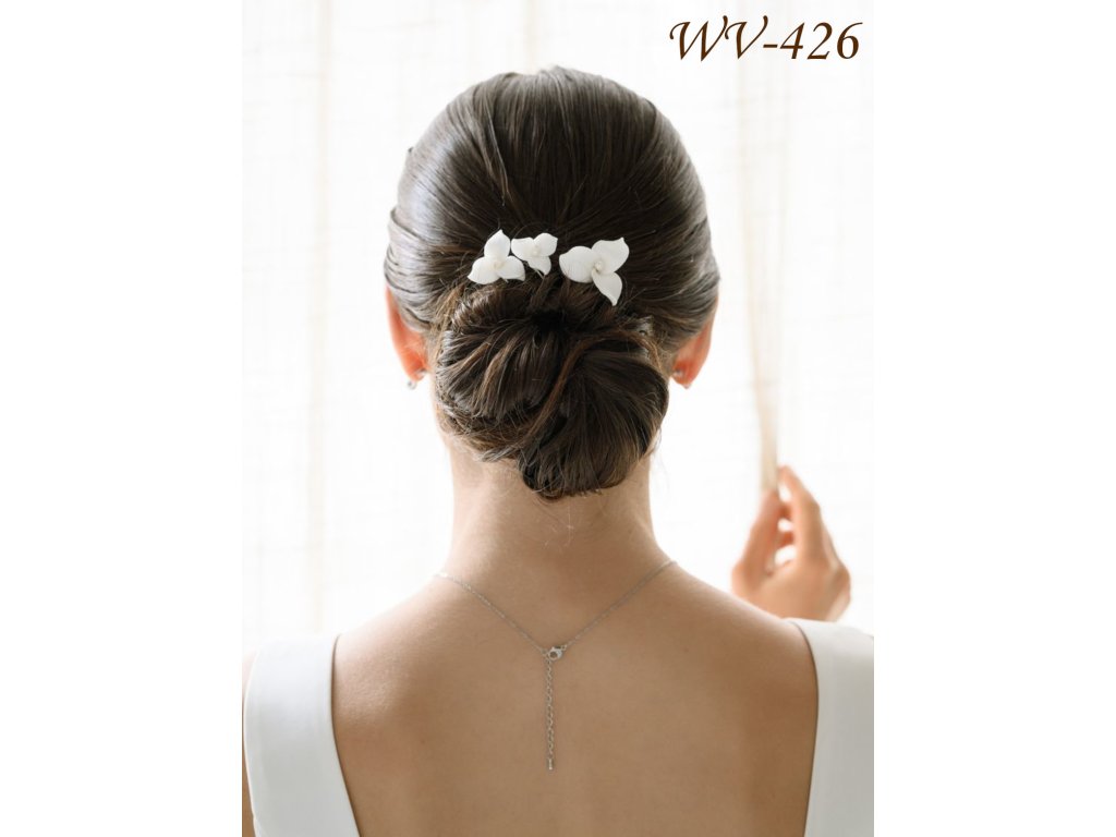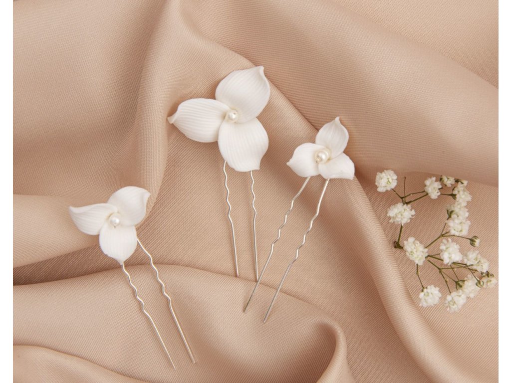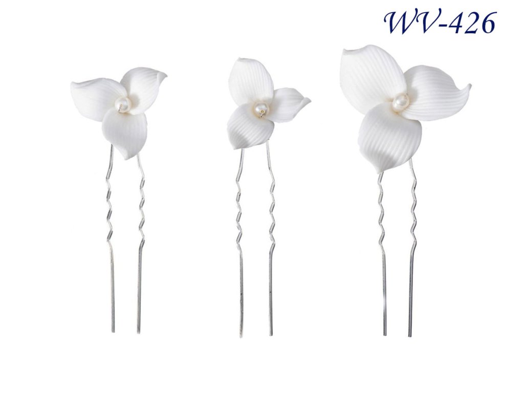 Bílá květinová svatební vlásenka (sada 3 ks): WV-426