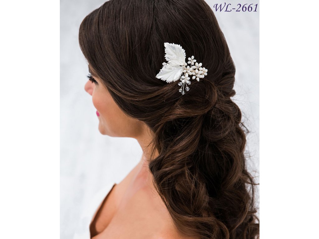 Jedinečný květinový svatební hřebínek, zdobený smetanovými perličkami, krystaly a kamínky.