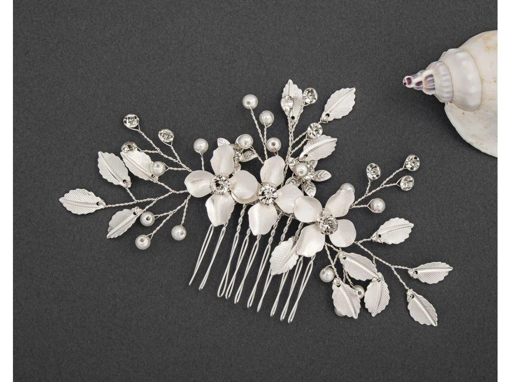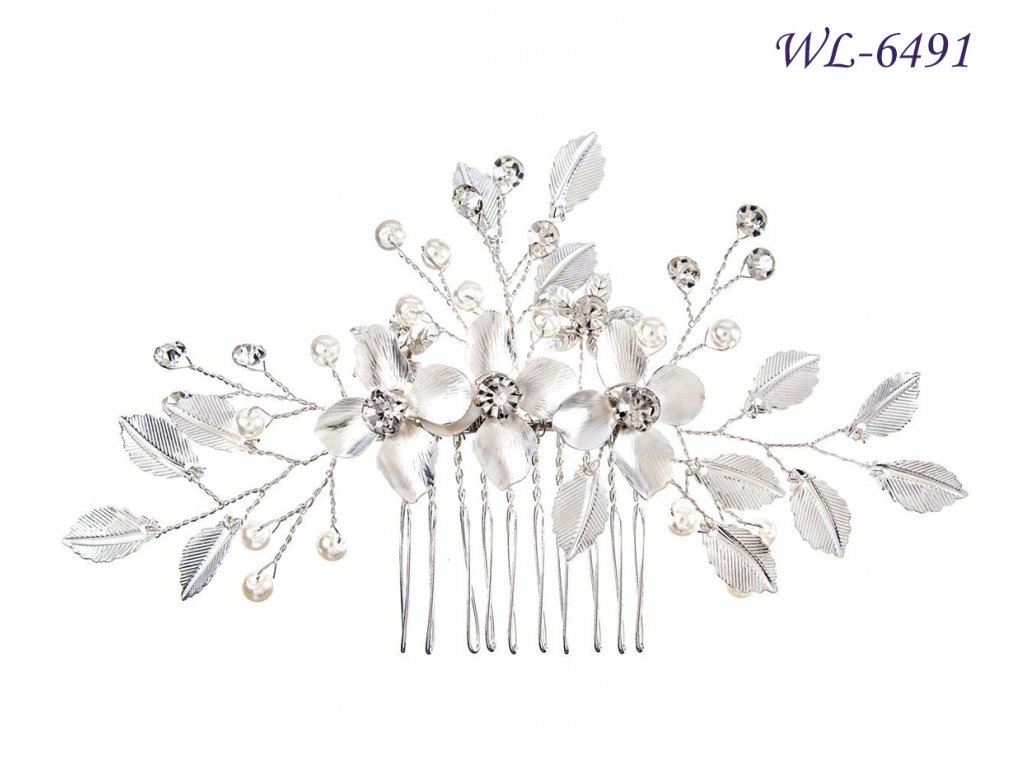 Jemný květinový svatební hřebínek s perlami WL-6491