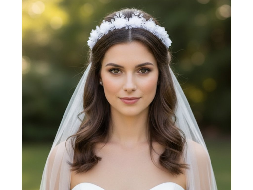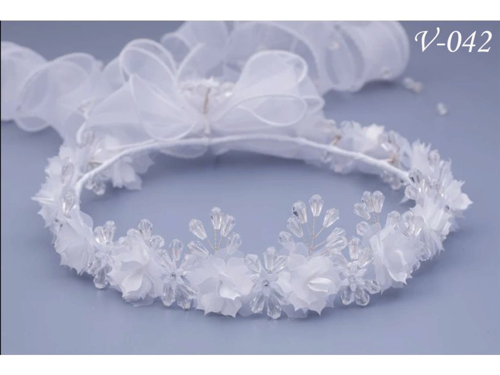 Bílý květinový věneček do vlasů V-042