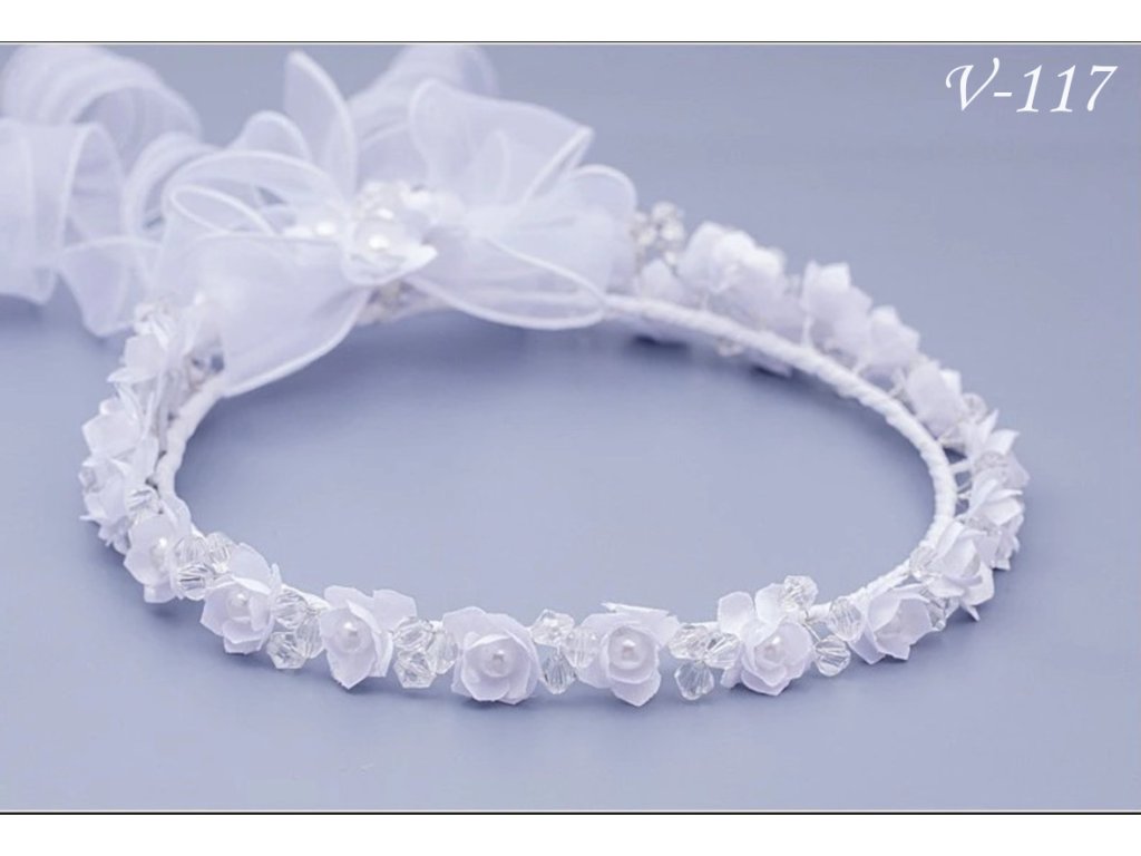Bílý květinový věneček do vlasů V-117