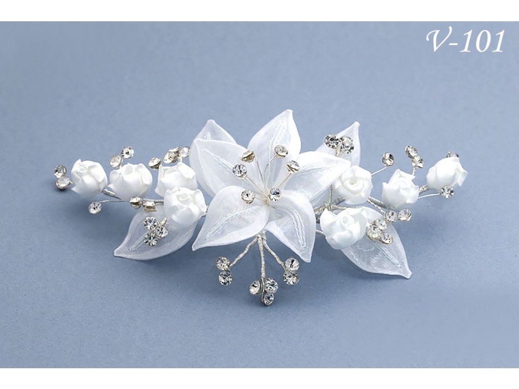 Svatební květina do vlasů lilie s krystaly V-101