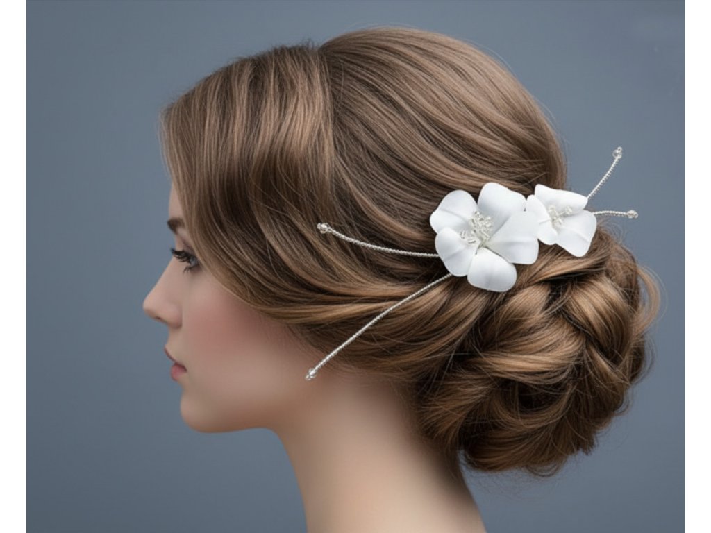 Květinová svatební ozdoba do vlasů, zdobená korálky.