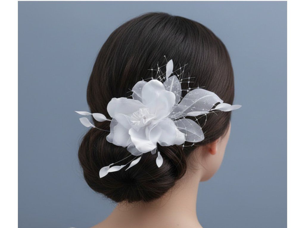 Svatební květina do vlasů se síťkou.