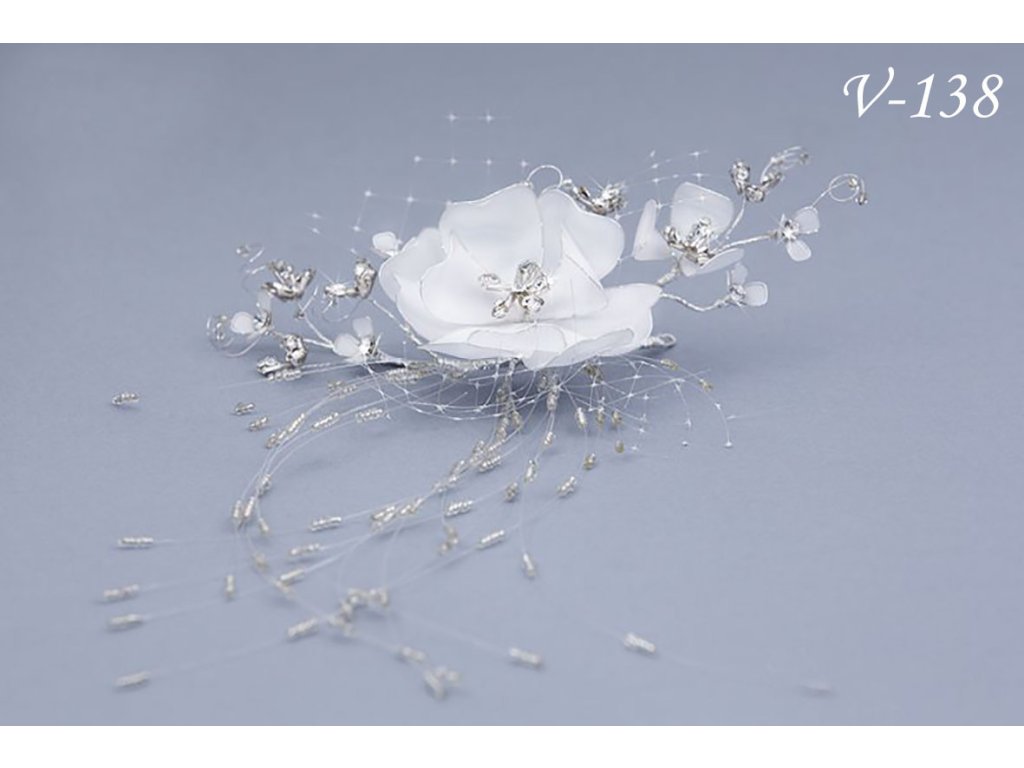 Svatební ozdoba do vlasů květina s krystaly a síťkou V-138