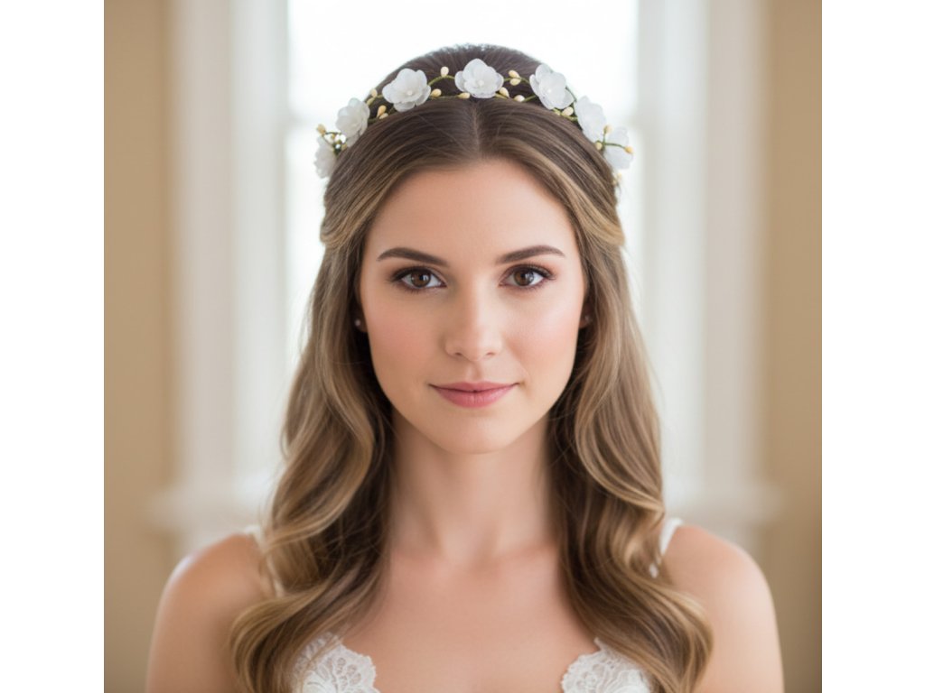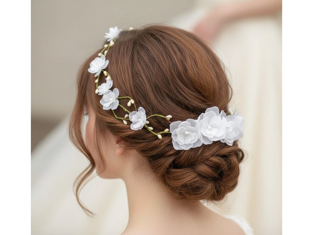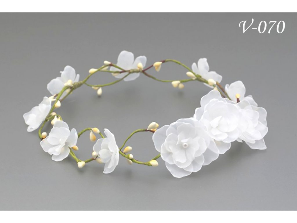 Svatební věnec do vlasů s bílými květy V-070