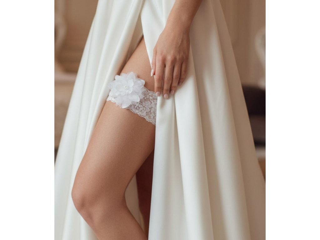 Krajkový podvazek na svatbu s velkým květem.