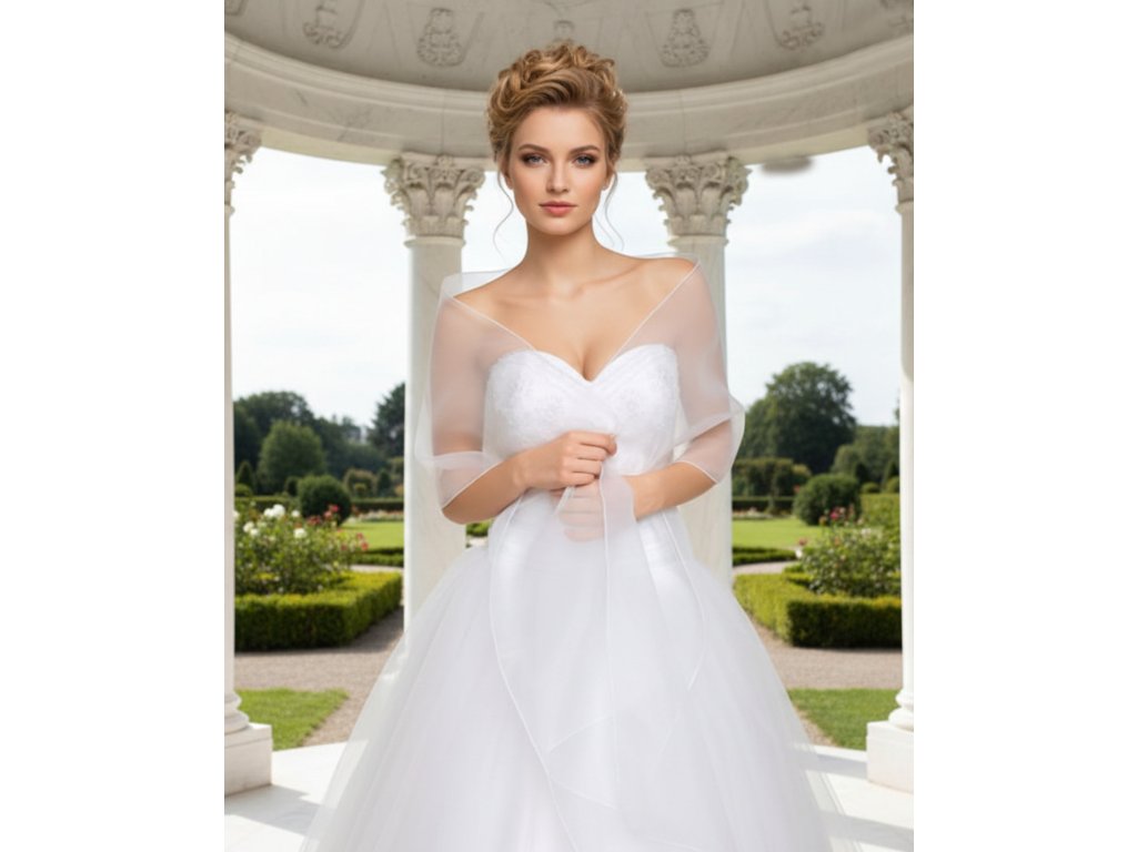 Jednoduchý svatební šál z organzy: SD-114 bílý