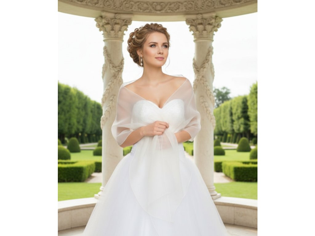 Jednoduchý svatební šál z organzy: SD-114 ivory