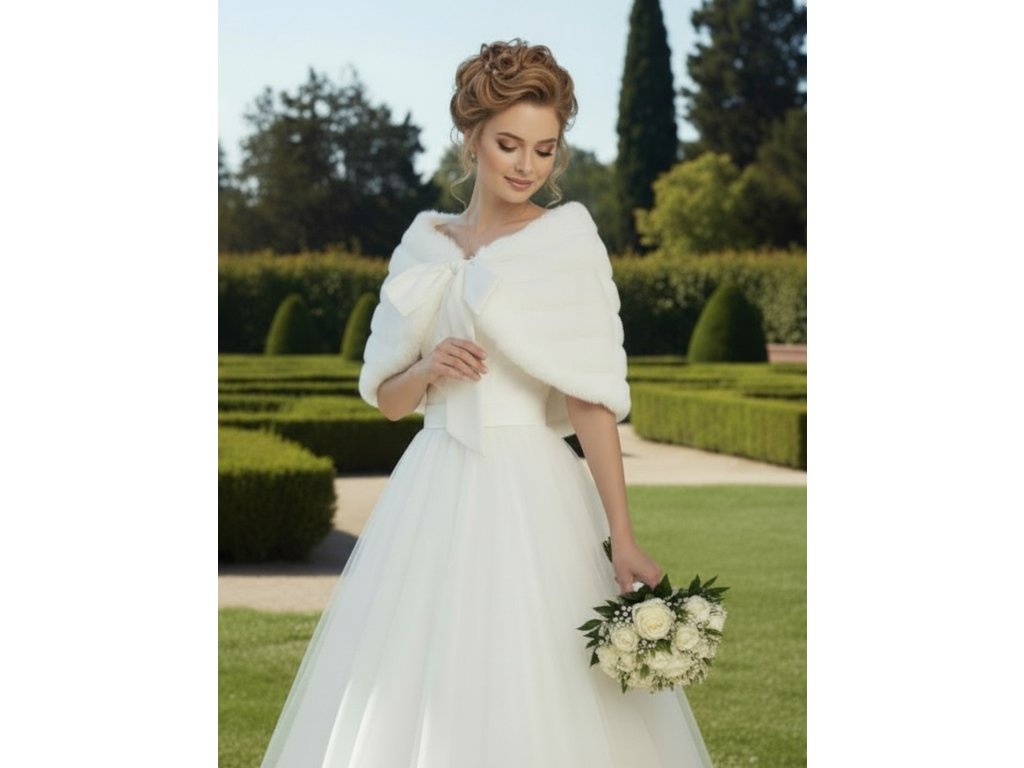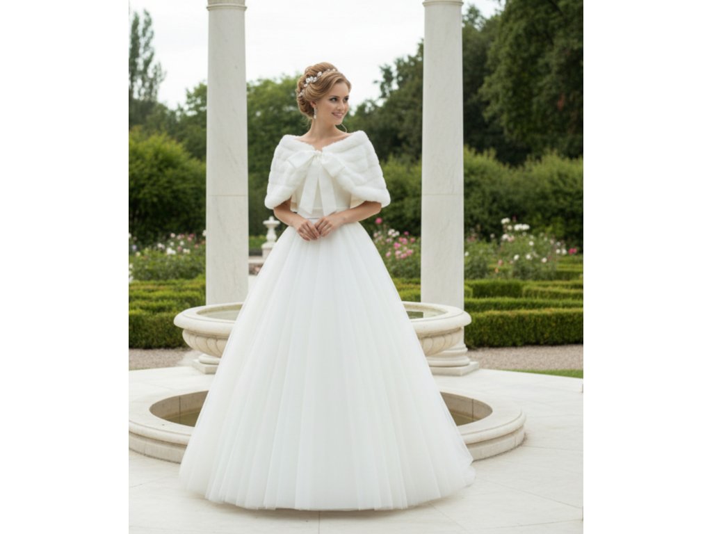 Kožešinová pelerína s taftovou mašlí - bílá: B-22