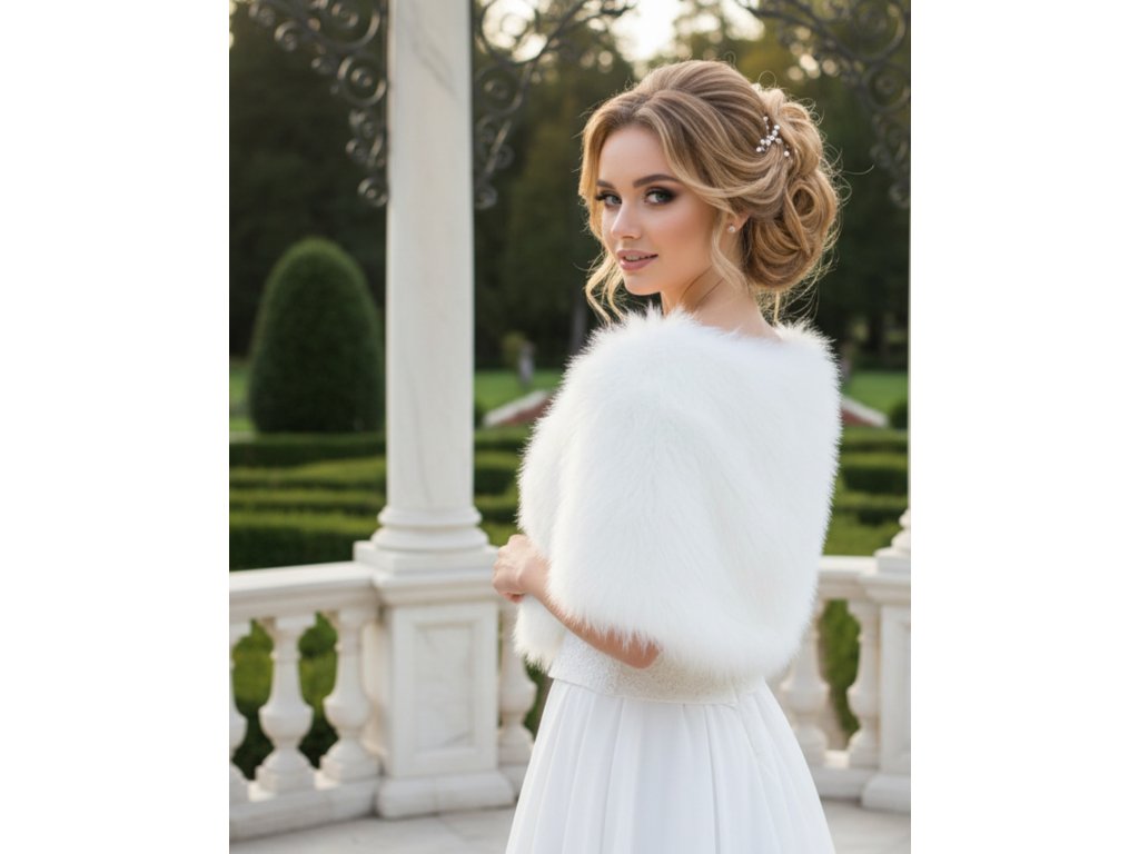 Svatební šál je vyrobený z jemné umělé kožešiny.