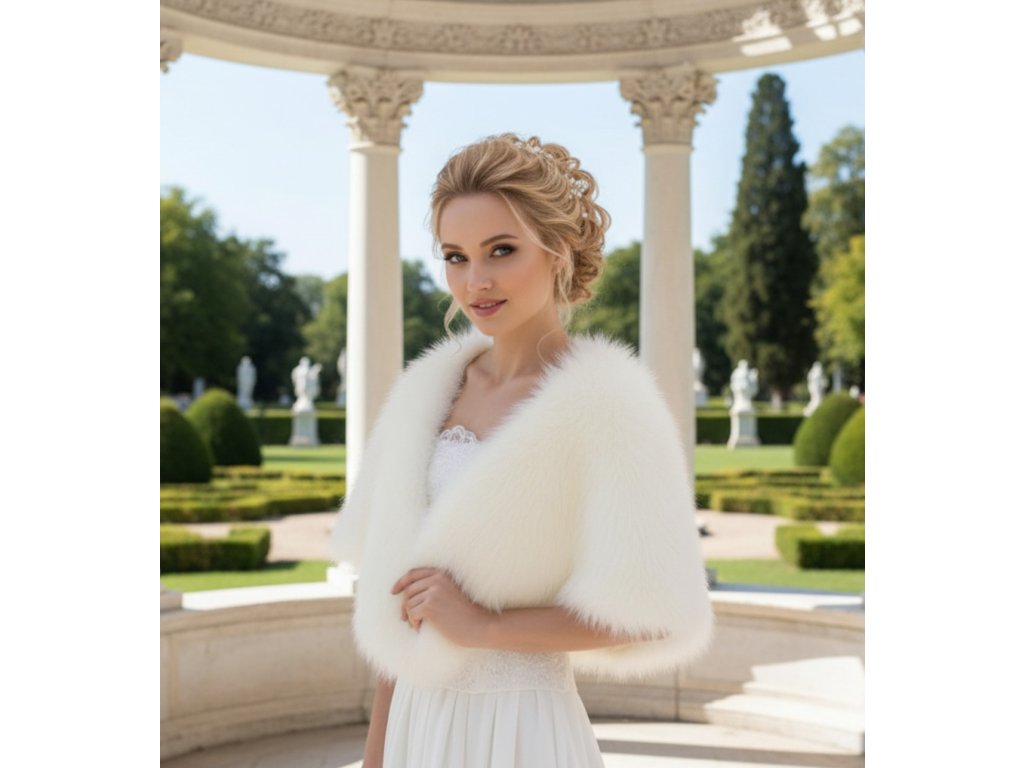 Svatební šál je vyrobený z jemné umělé kožešiny.