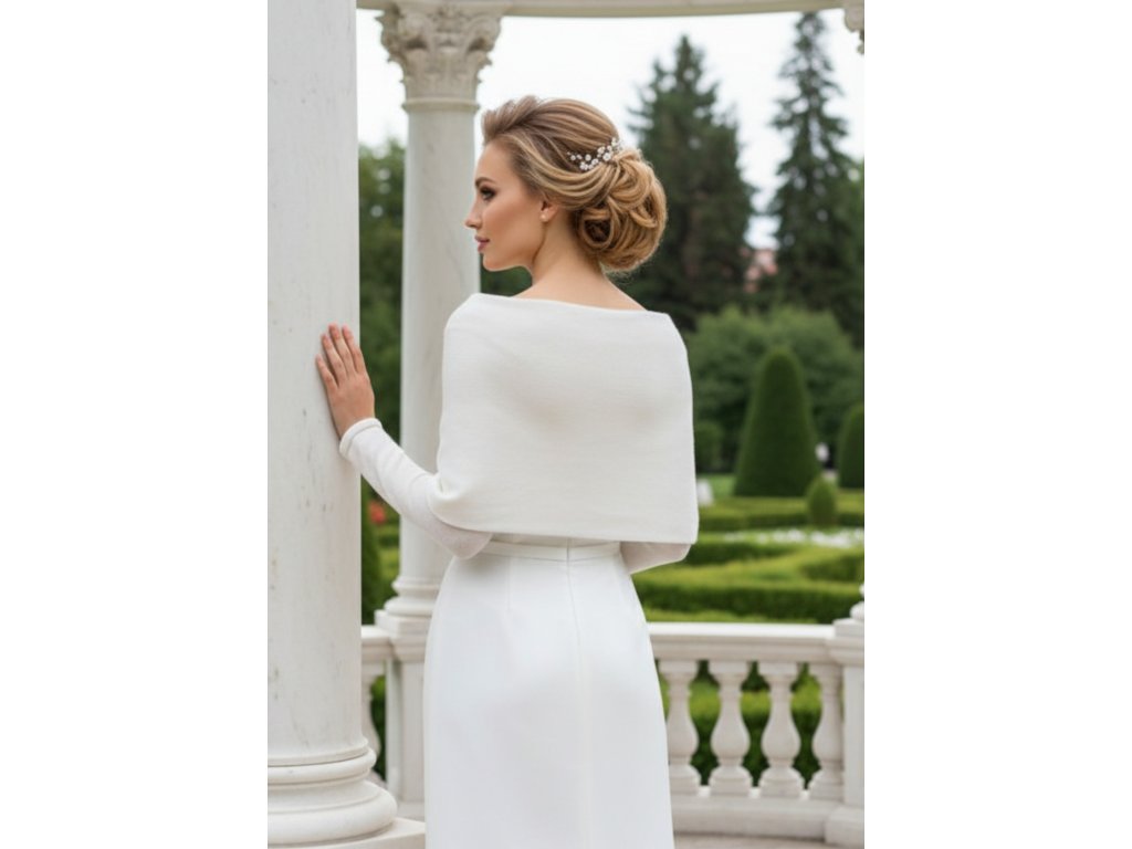 Pletená svatební pelerína s dlouhými rukávy - bílá: BF-223