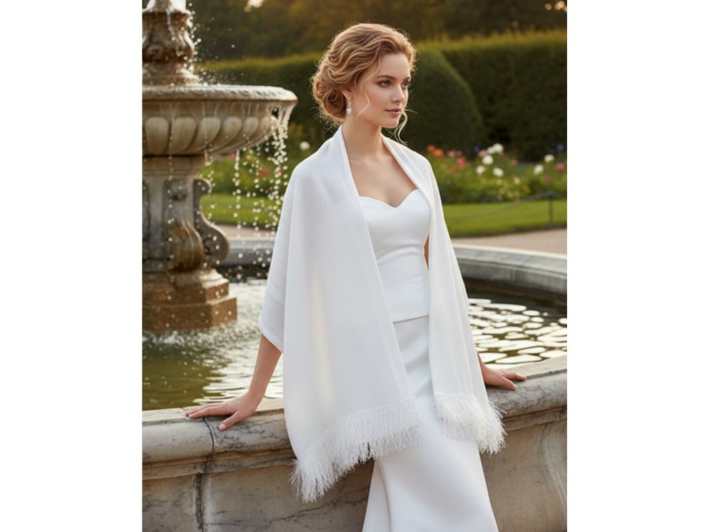 Pletený svatební šál s třásněmi - bílý: BS-78