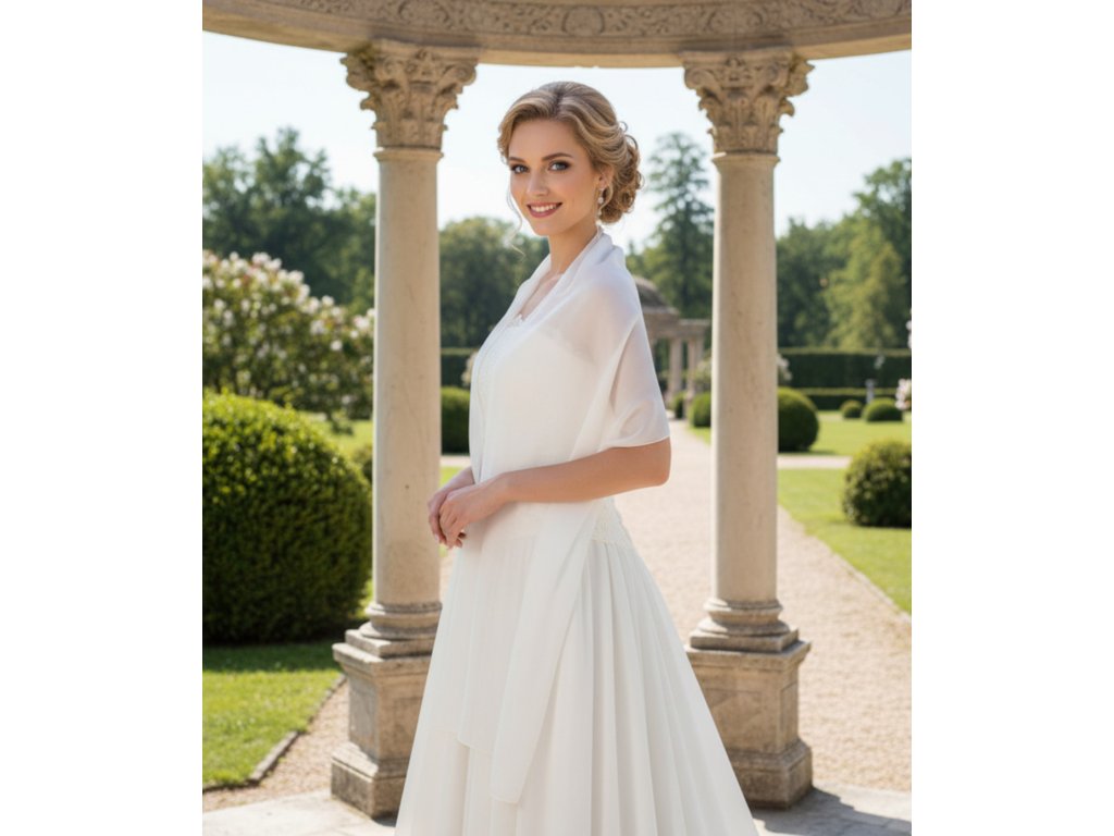 Šifonový svatební šál přes ramena.