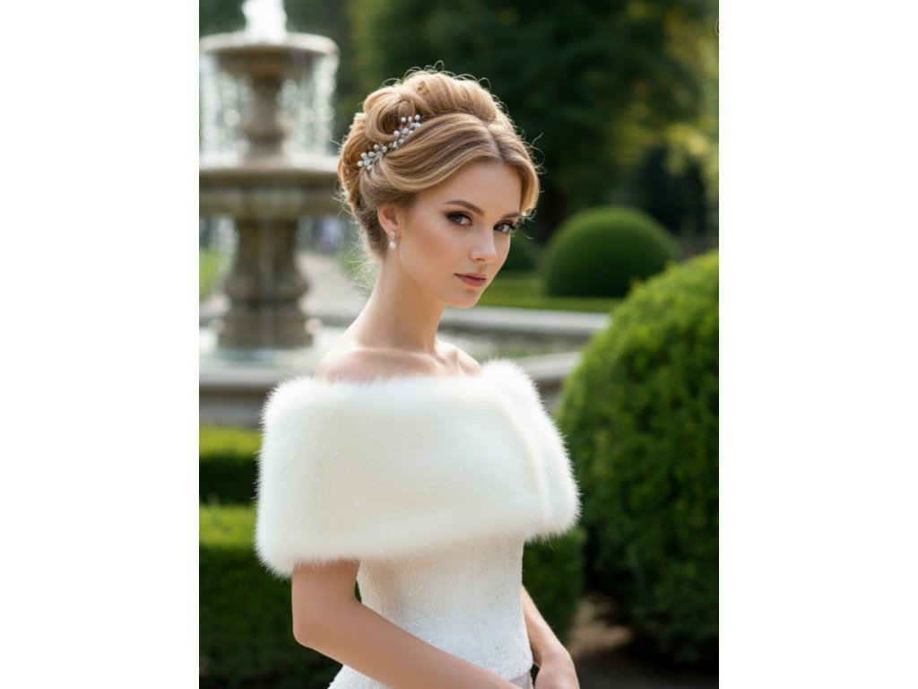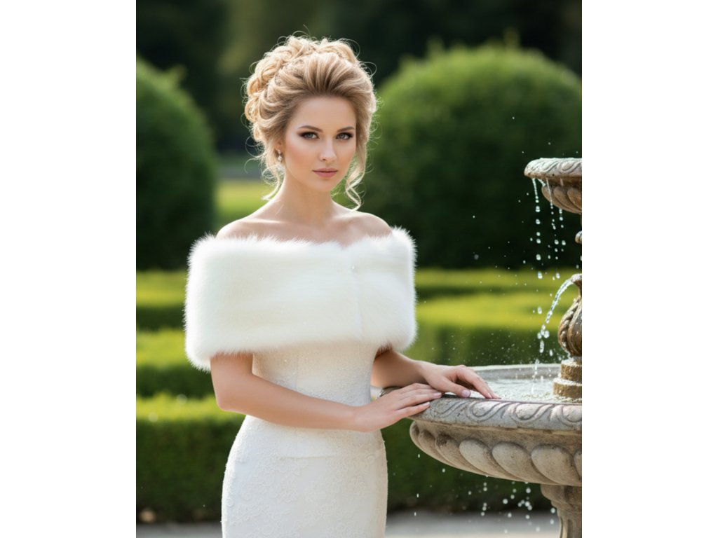 Svatební pelerína z umělé kožešiny.
