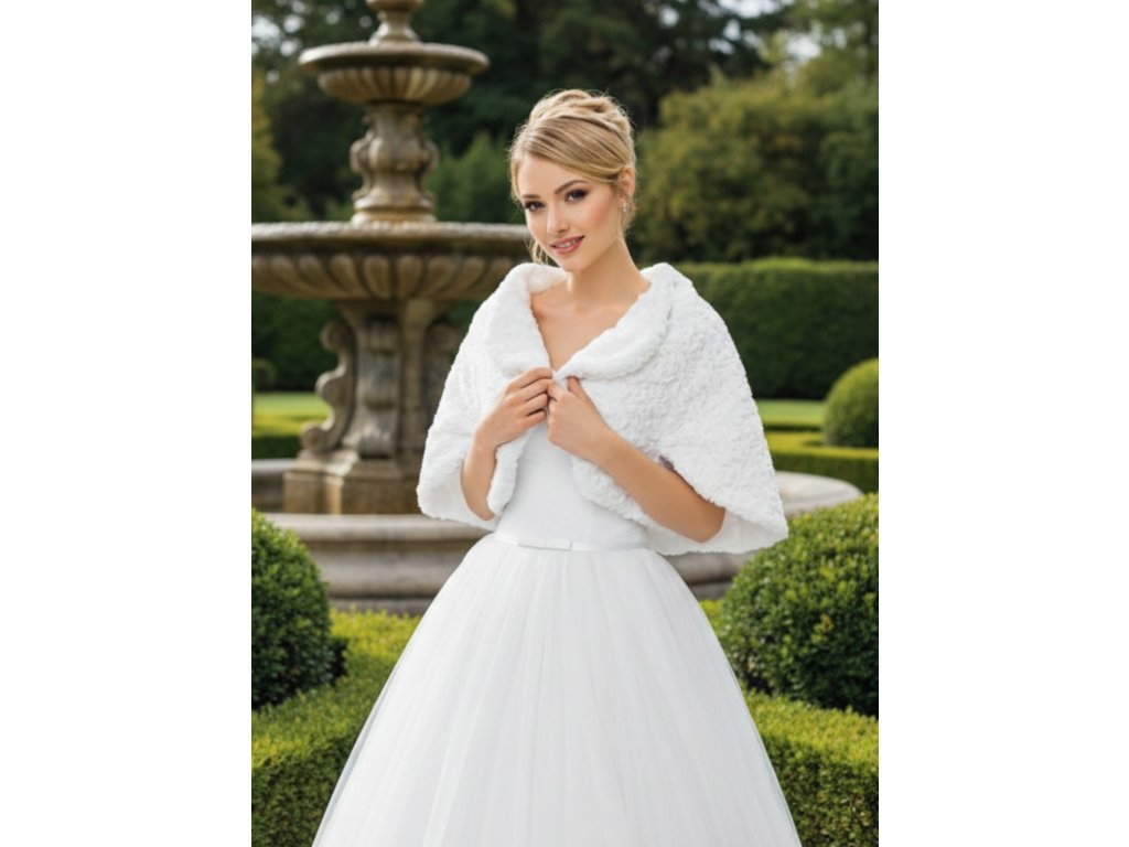 Svatební pelerína z umělé kožešiny.