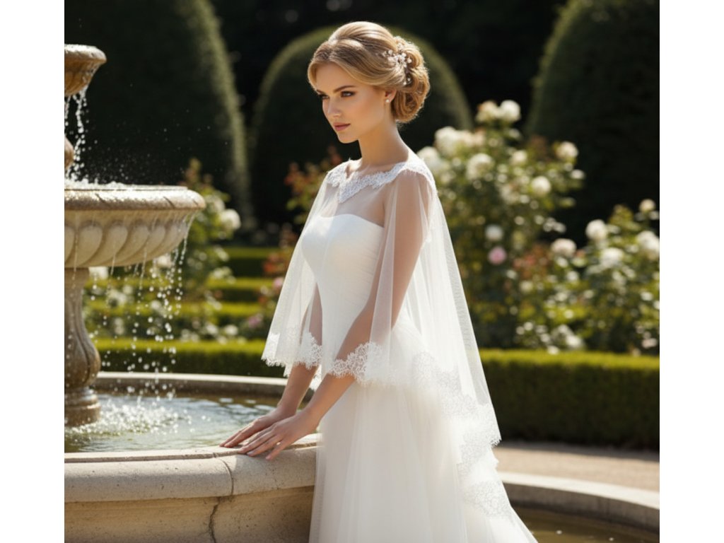 Svatební pelerína lemovaná krajkou - ivory: BD-304