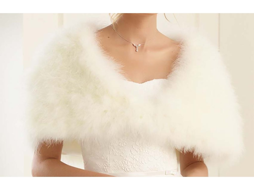 Svatební pelerína s peřím z Marabu.