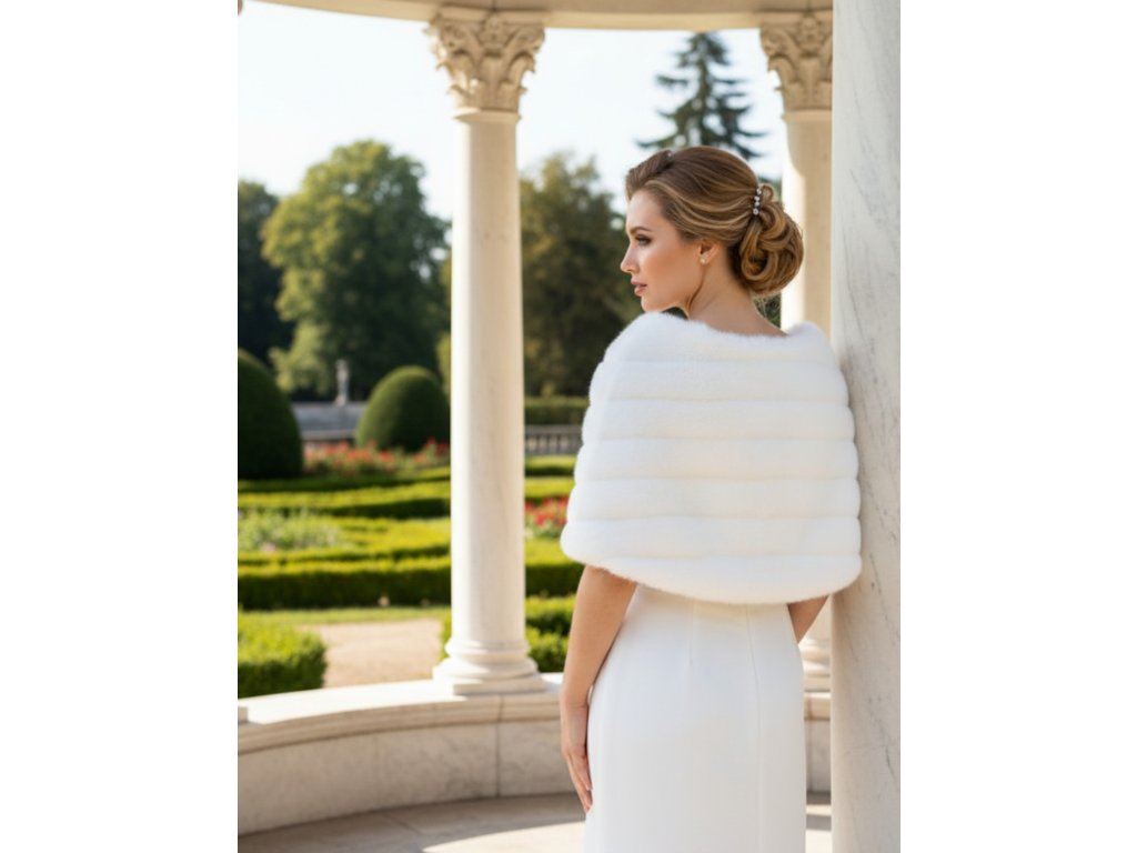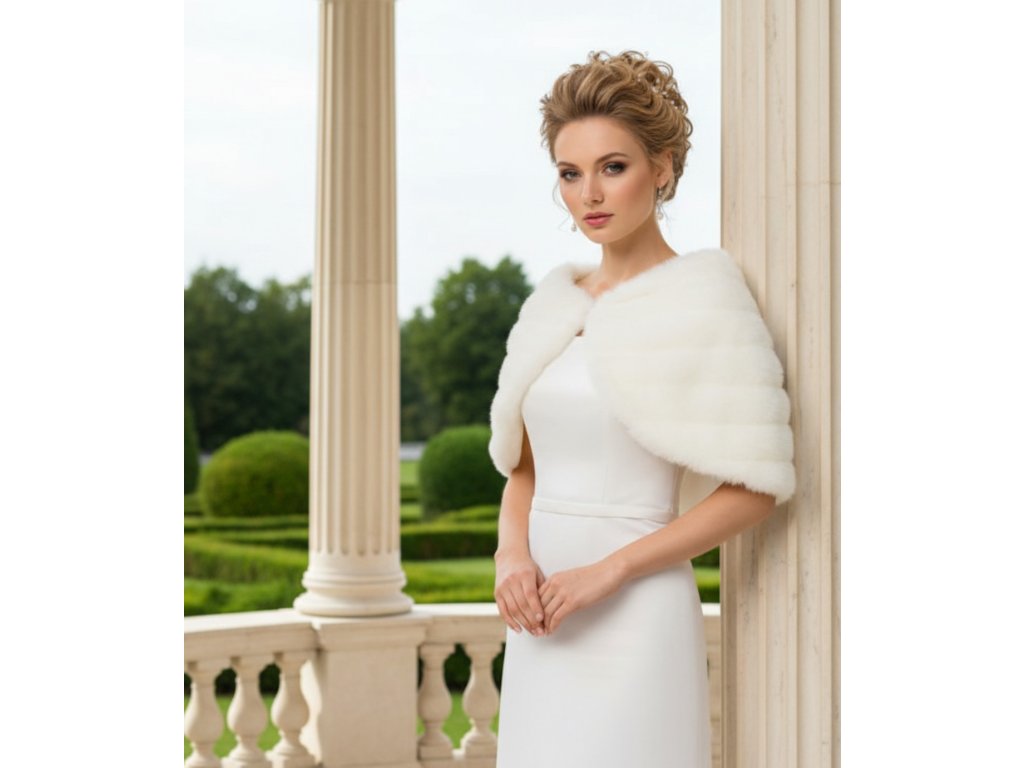 Svatební pelerína z prošívané kožešiny - bílá: BF-240