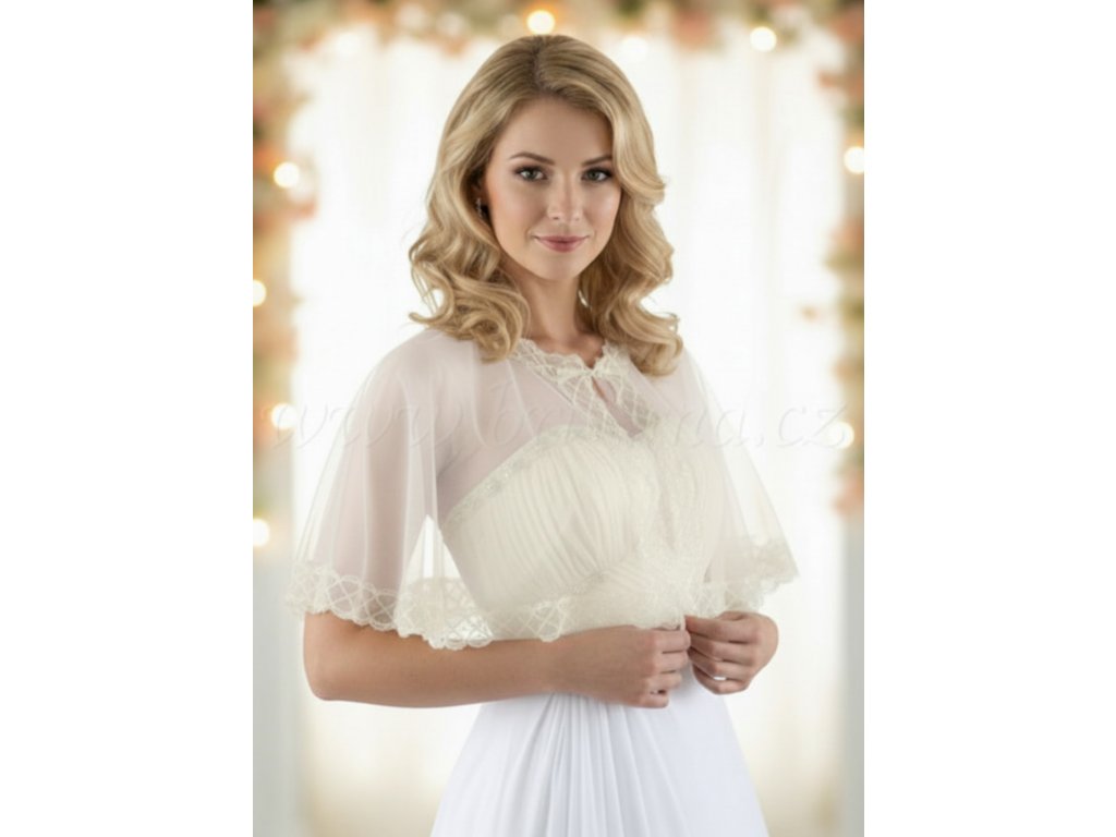 Tylová svatební pelerínka s výšivkou - ecru: BS-53V