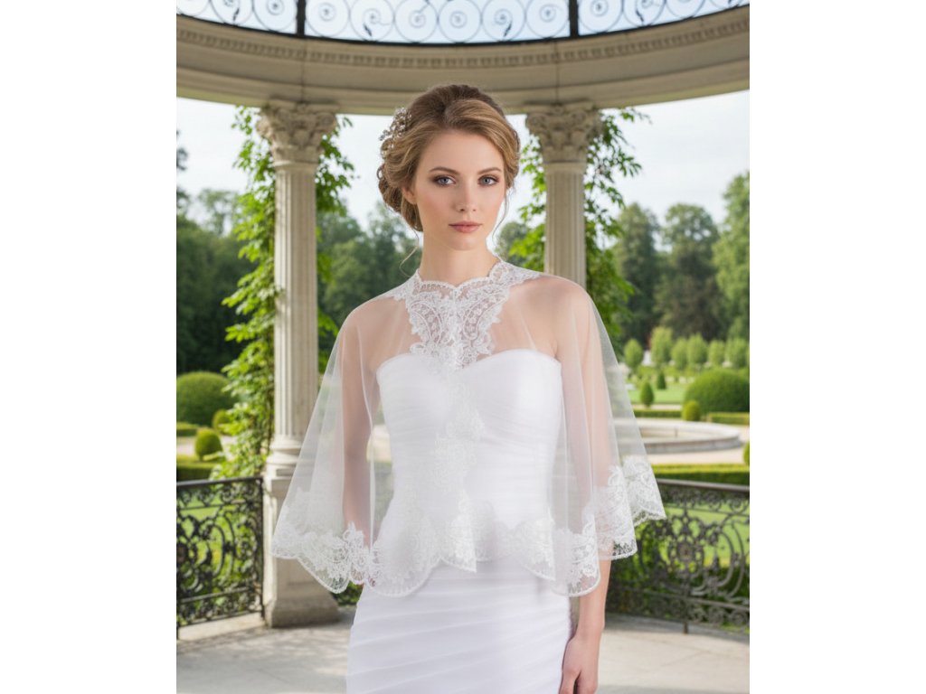 Tylová svatební pelerínka s výšivkou - ecru: BS-84V