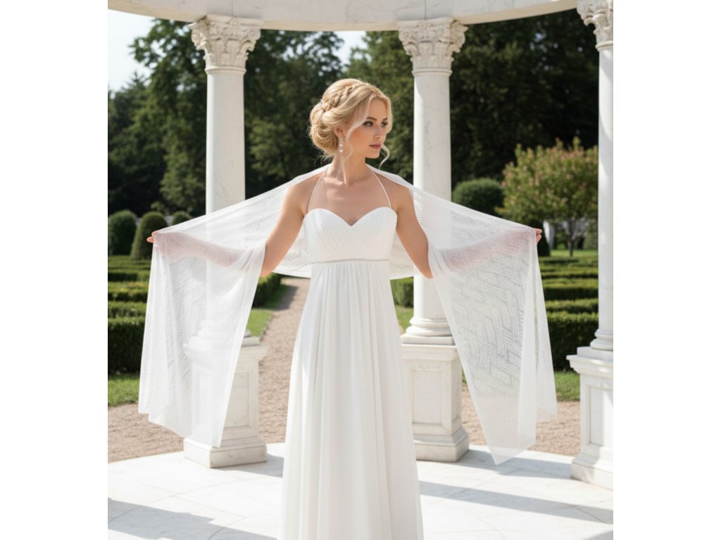 Vzorovaný šifonový svatební šál.
