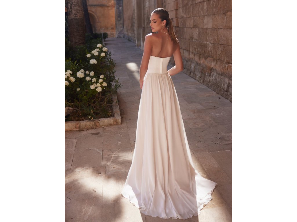 Dlouhá šifonová svatební sukně s vlečkou.