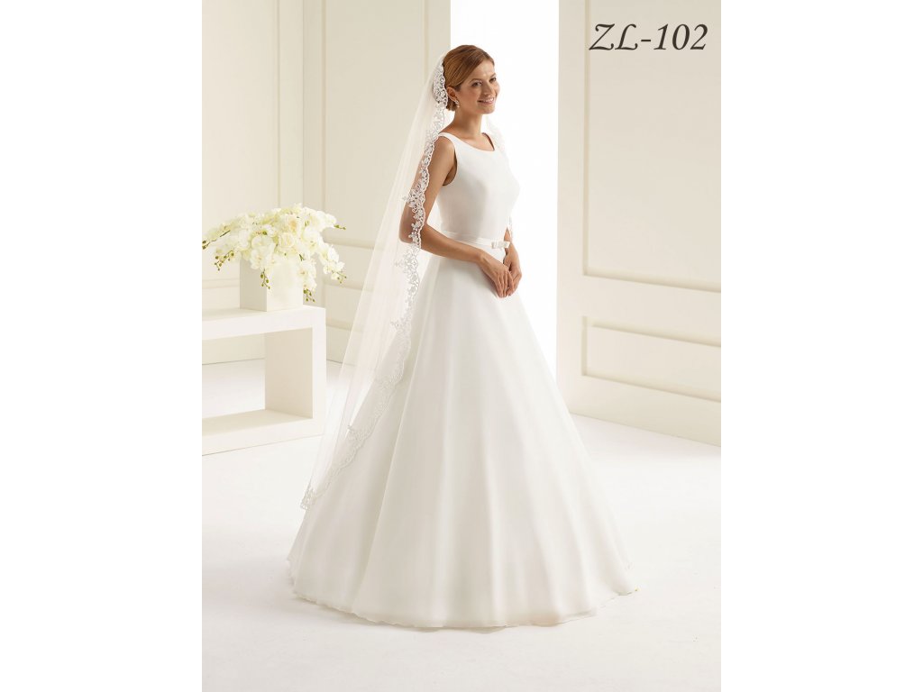 Dlouhý krajkový svatební závoj vyšívaný korálky: ZL-102, bílý