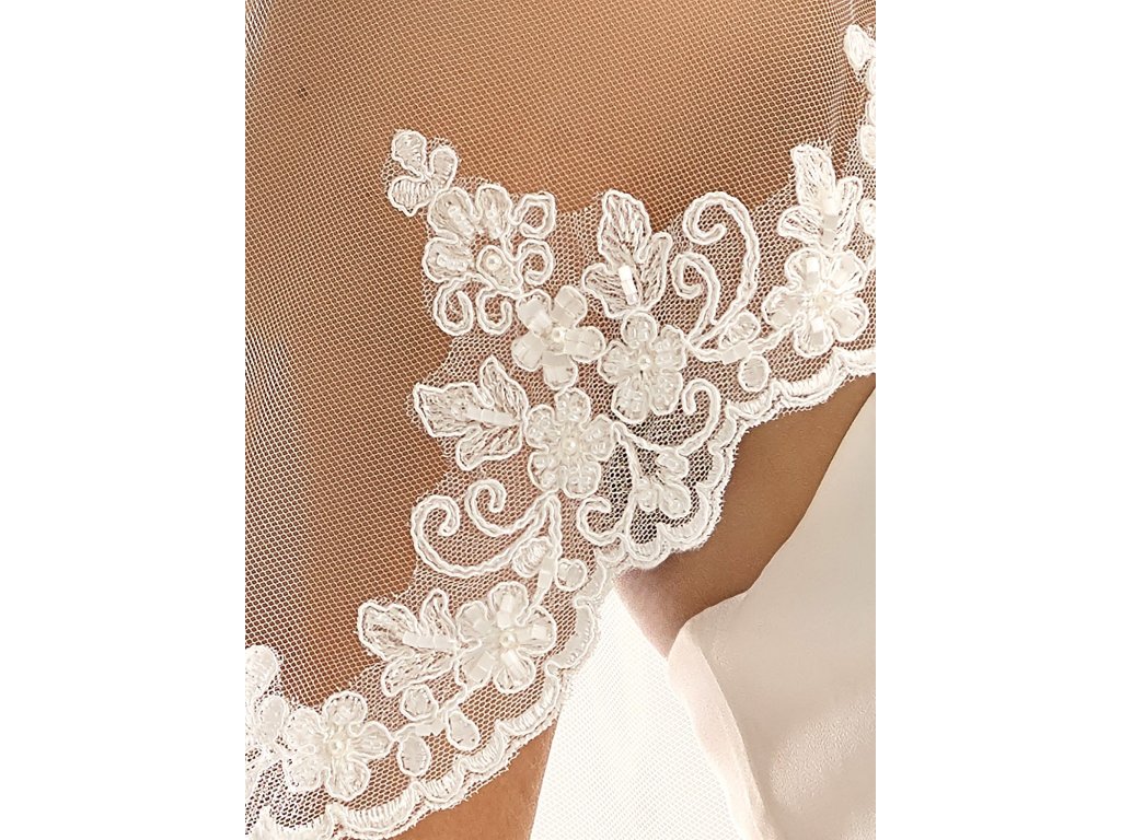 Dlouhý krajkový svatební závoj ručně zdobený korálky.