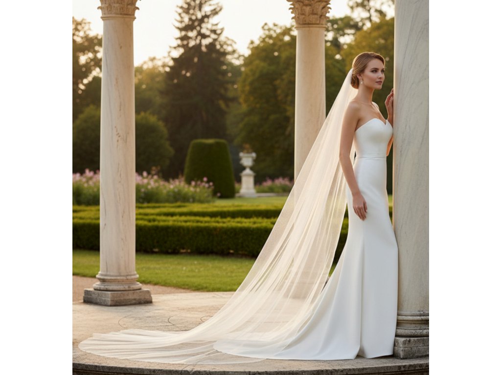 Dlouhý svatební závoj bez lemu.