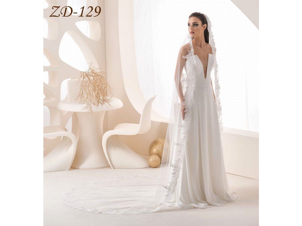 Dlouhý svatební závoj s krajkou ZD-129 - různé délky
