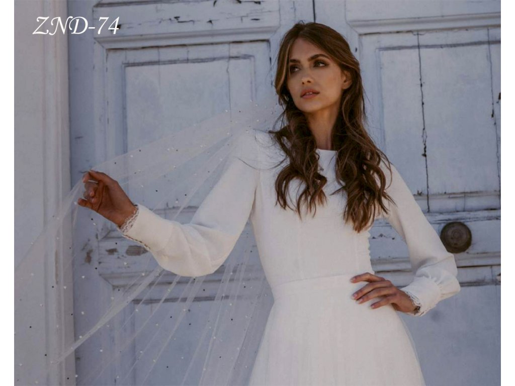 Dlouhý svatební závoj s krystaly a perlami ZND-74 ivory