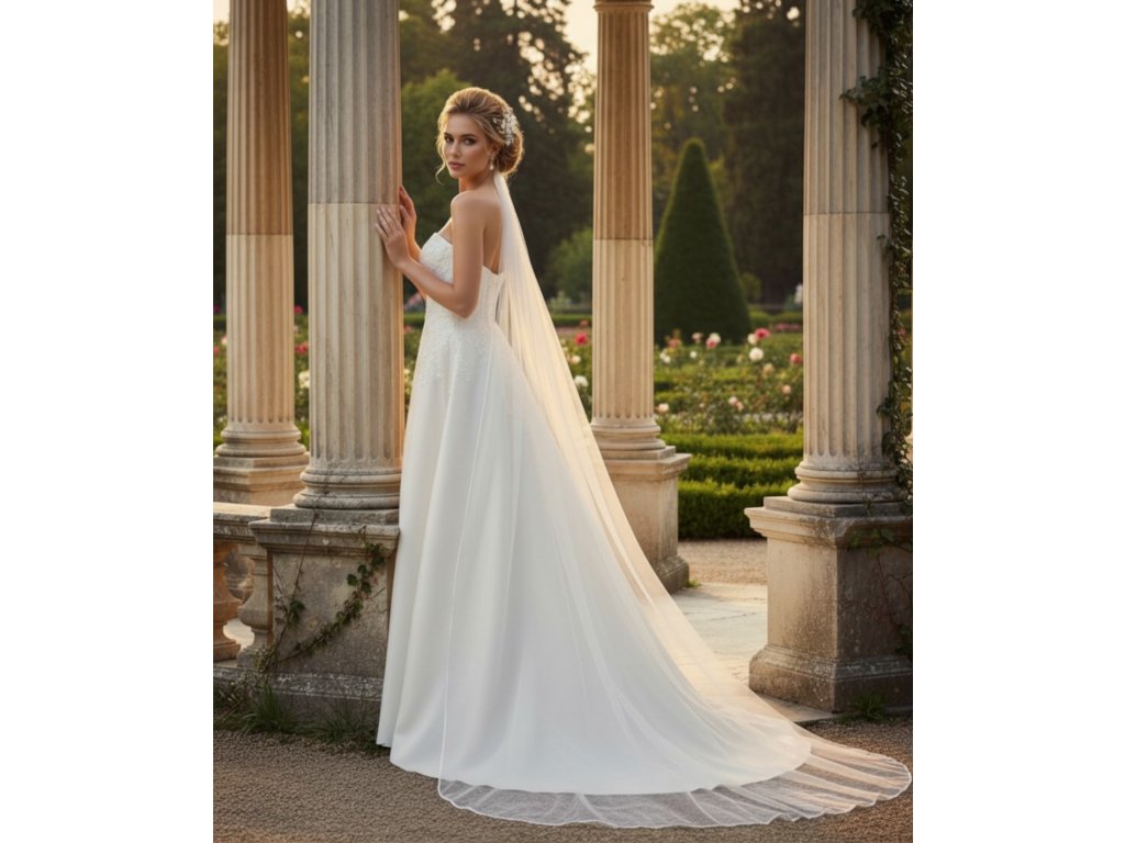 Dlouhý svatební závoj se saténovým lemem Z-25