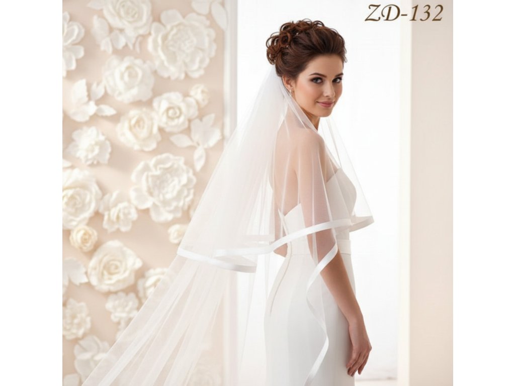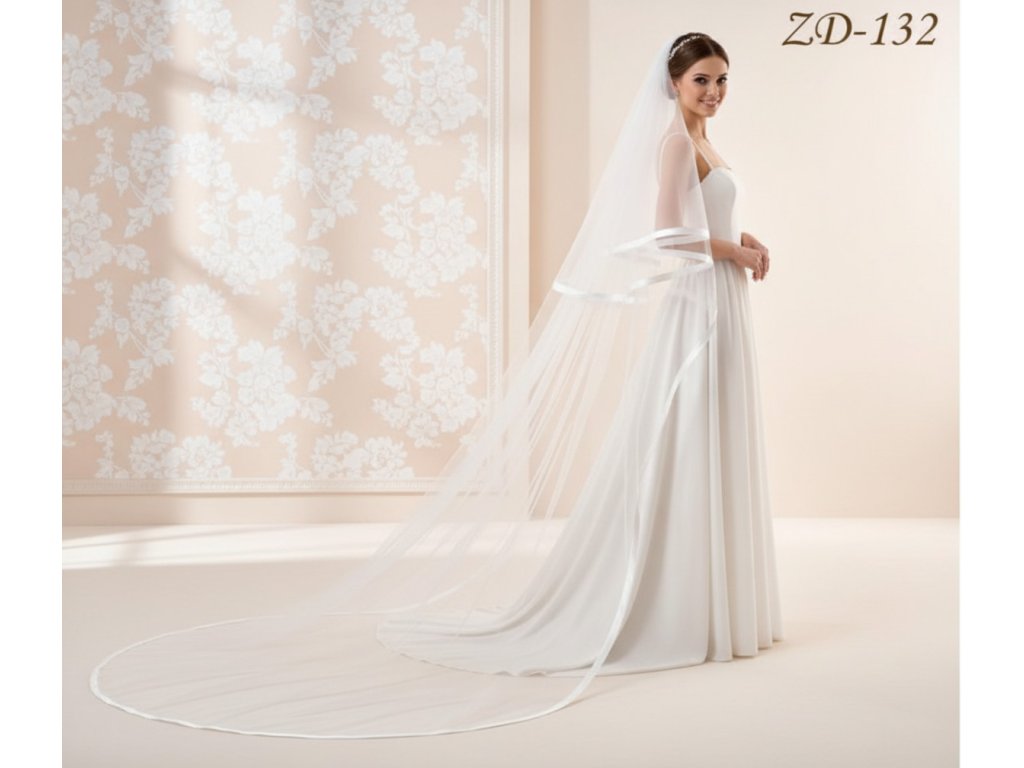 Dlouhý svatební závoj se silným saténovým lemem ZD-132