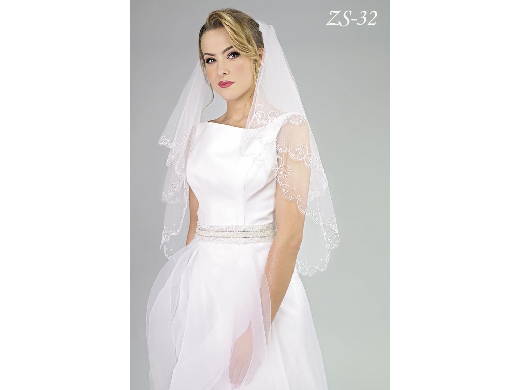 Dvojvrstvý svatební závoj zdobený výšivkou a flitry ZS-32