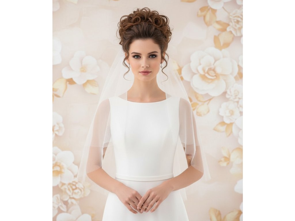 Délka svatebního závoje je 60/80 cm, šířka 140 cm.