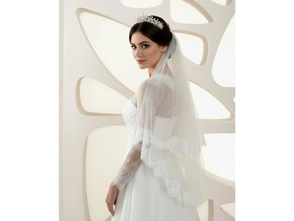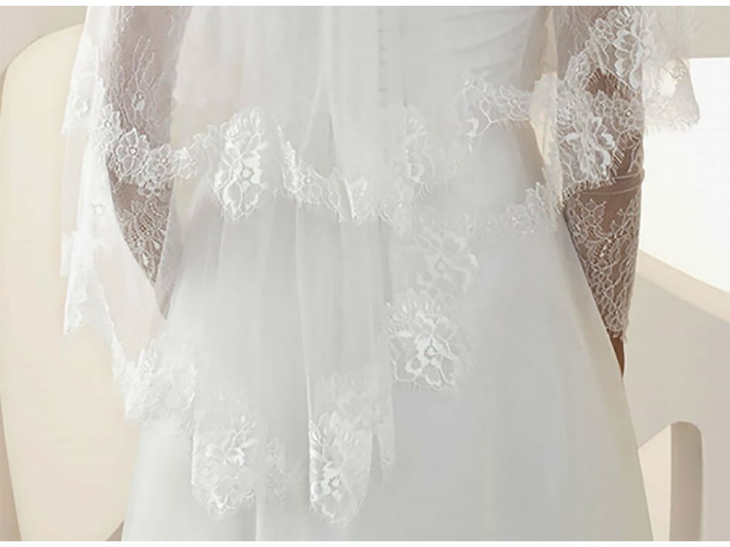 Dvouvrstvý svatební závoj s květinovou krajkou ZD-45L