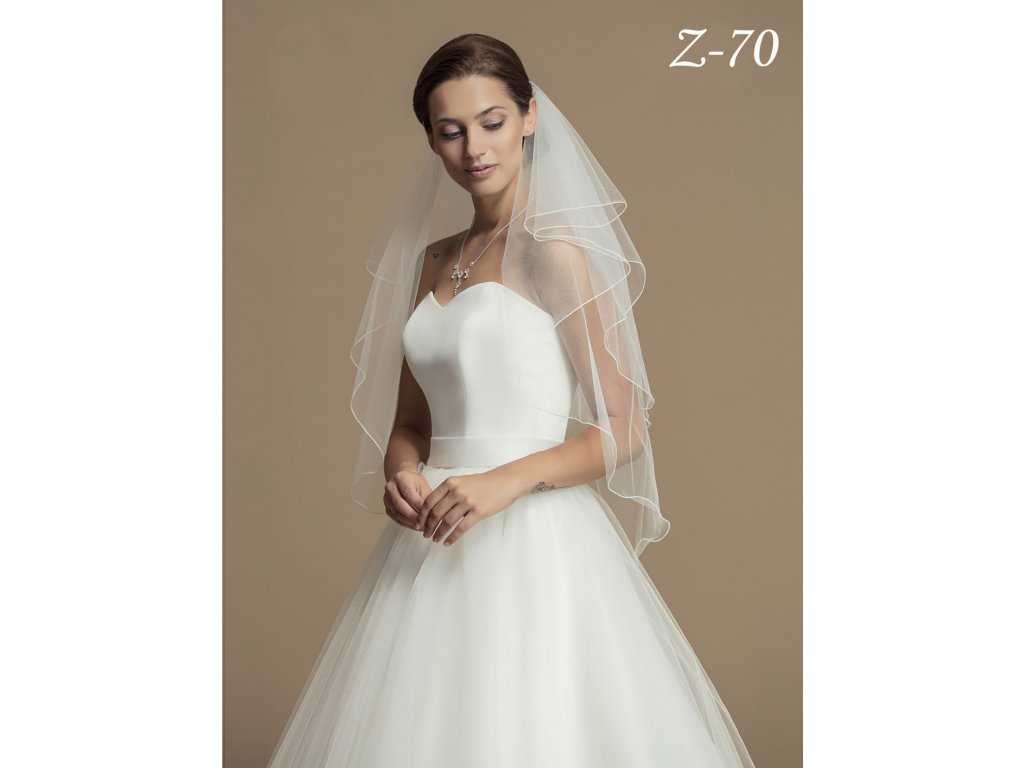 Délka závoje je 80/60 cm, šířka 150 cm.