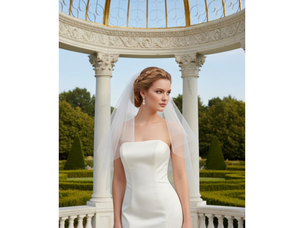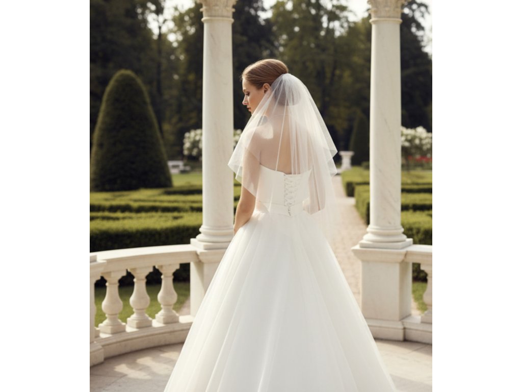 Dvouvrstvý svatební závoj bez lemování.